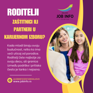 Karijerni savetnici sve češće uključuju roditelje u proces profesionalne orijentacije upravo zato što njihov pristup može značajno uticati na konačne odluke mladih. Cilj nije da roditelj odluči umesto deteta, već da razume kako izgleda savremeno tržište rada i kako da pruži podršku bez nametanja.